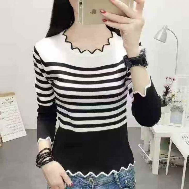 133件包芯纱女装秋冬新款针织打底衫,单款两色,套头条纹百搭上衣,面料柔软,质量好 独立包装模特仅供参考实拍为主。 货号:1303