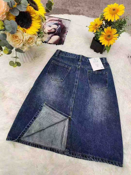 天猫下架女士后开叉牛仔半裙405条,码数M-XL,独立包装全清7.8元,分货...