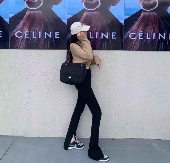 纯黑色高腰提档窄版直筒秋款牛仔裤女款秋季修身显瘦长裤子 钢扣 拉链独立包装