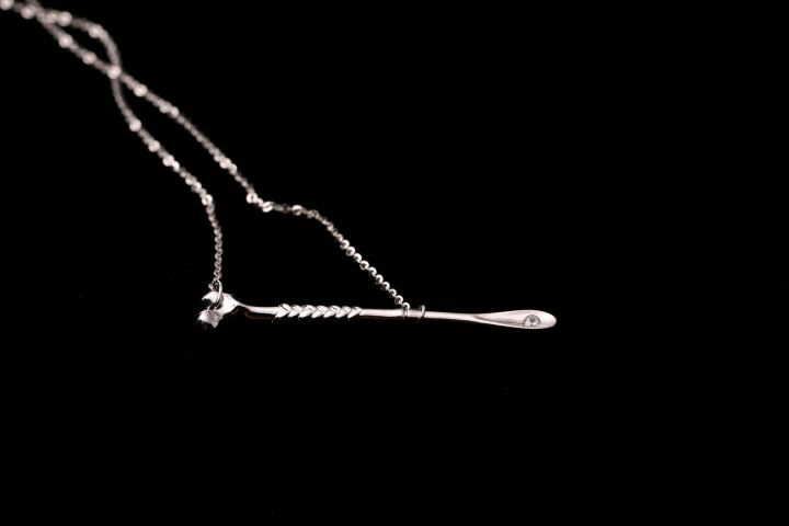 这世界复杂的像团乱麻,惟愿用这项链在烦扰错综里净 心明志, “ 日耳曼条顿武士徽章中的骨”,代表着忠诚 无二的信念;“藏域文化中的金刚结”体现着密而有序, 顺缘善护念的内心秩序;而代表“中华文人的竹节”则 寓意虚怀若谷而有气节的品格心胸; “精致小勺”表达