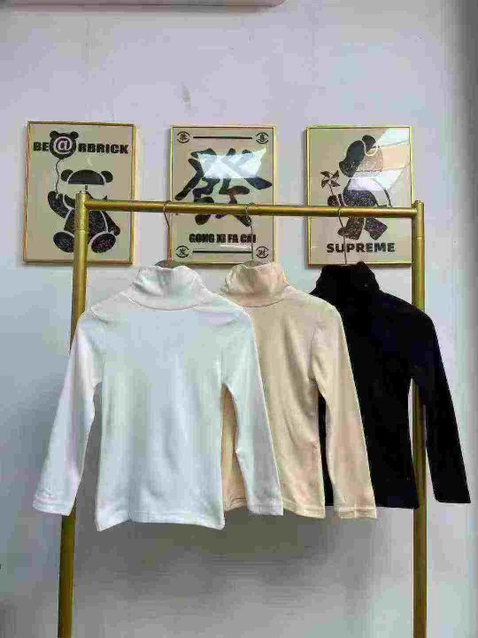天猫在售款350件左右高品质秋冬款男女中大童高领长袖双面德绒打底衫,码数110-170,单款三色,面料柔软高弹力,独立包装带吊牌
