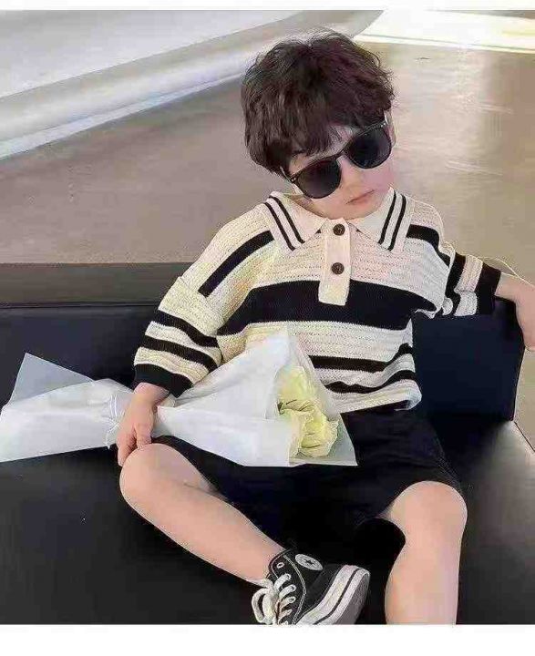童装短袖韩版条纹POLO领针织衫,数量:119件,码数:120-130-140-150-160-1...