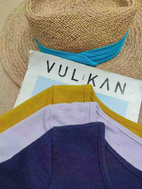 [月亮]:韩系褶皱肌理感V领正肩T恤