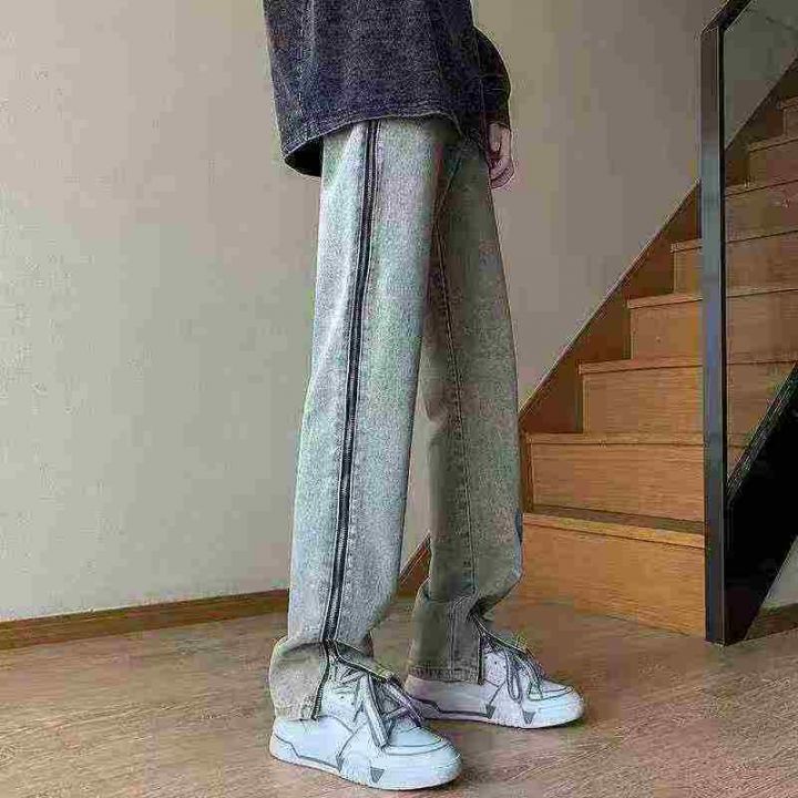 美式vibe裤子ins高街潮黄泥牛仔裤男女侧边拉链开叉宽松直筒长裤,码数L-3XL,数量330件,独立包装,货品干净,图一色为主,