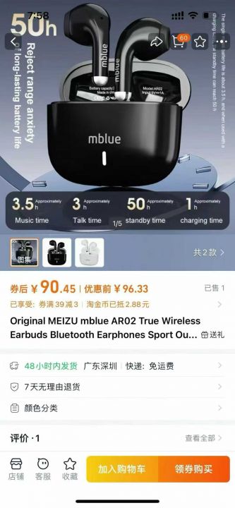 5000pcs原装魅族mblue品牌 TWS 蓝牙耳机,满电待机8小...