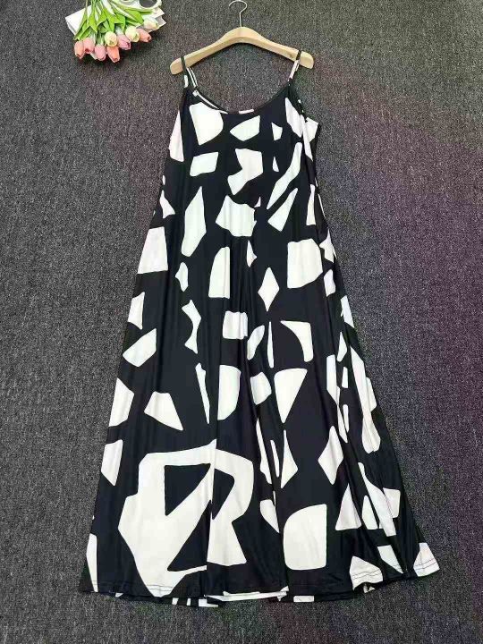 设计感宽松复古印花无袖吊带连衣裙夏季新款海边度假风气质,独立包装,Xl-5XL,142件,全清7.8。 货号:1323