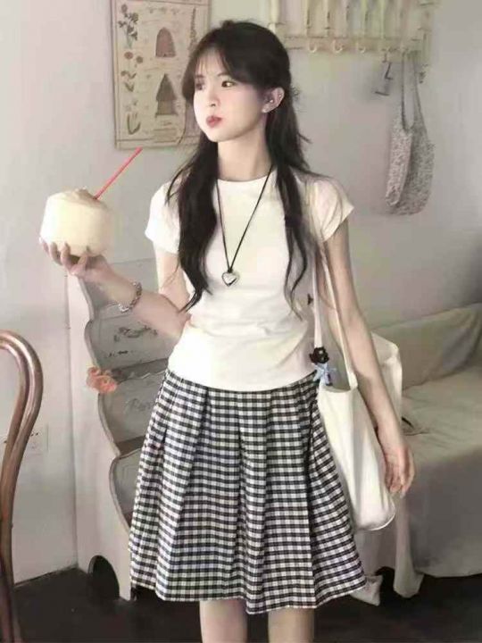 3.5清电商仓回收65件韩系风黑白格子短裙春夏薄款口袋半身裙通勤休闲半身裙...