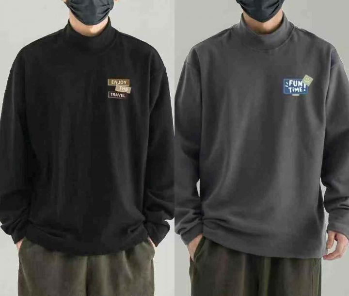 2000件左右青年百搭时尚德绒长袖T恤ins潮牌美式字母印花半高领套头上衣,码数M—3XL,独立包装。 货号:1303