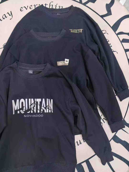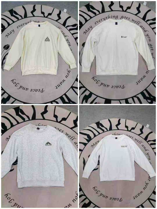 750件左右华棉男装圆领卫衣,码数M—3XL,后领包边到肩,新款百搭简约印花,独立包装。 货号:1323