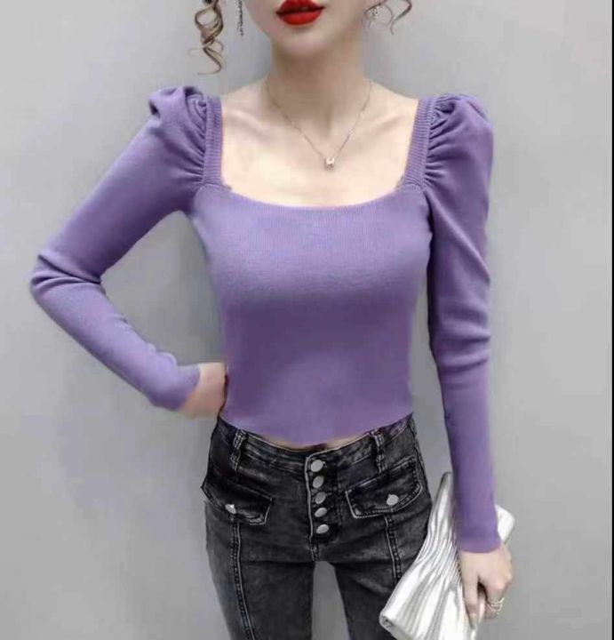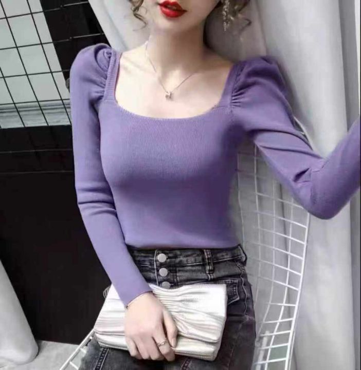 秋冬季新品洋气泡泡袖方领弹力修身气质套头毛衣,独立包装,均码面料柔软舒适弹力大,240件,全清5.9元超低价秒杀!