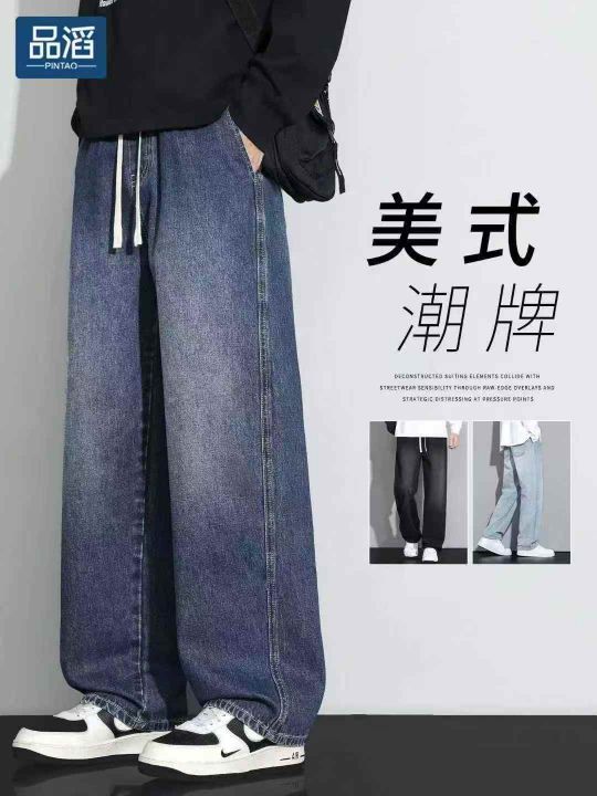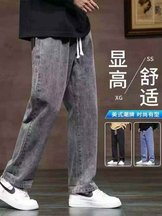 ☕️潮牌男装松紧腰牛仔阔腿裤