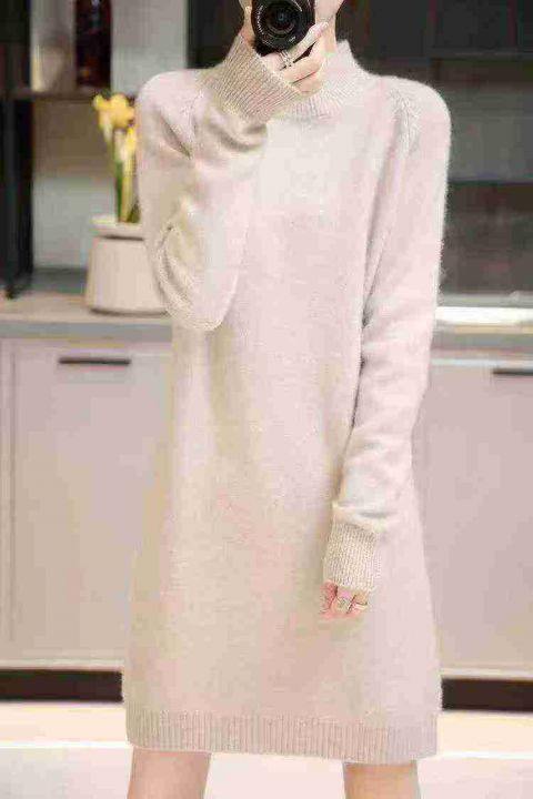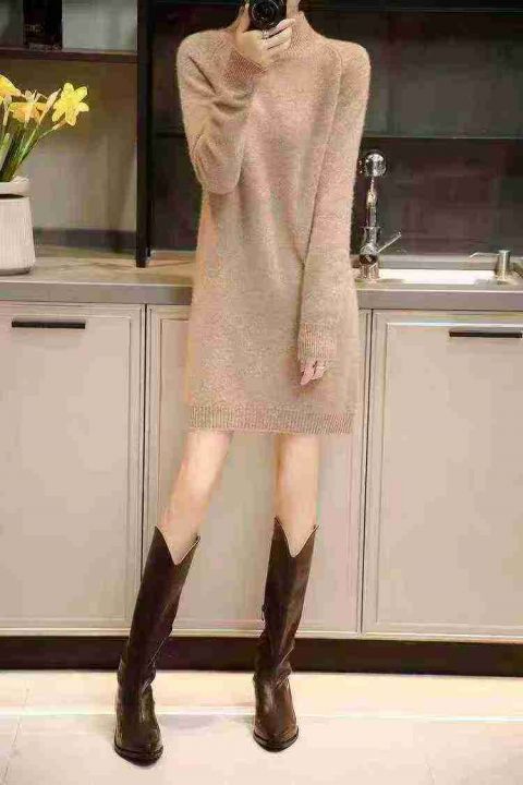 半高领慵懒风仿水貂毛毛衣女早秋新款加厚打底宽松针织连衣裙,独立包装,均码,256件,清9.5,分➕1