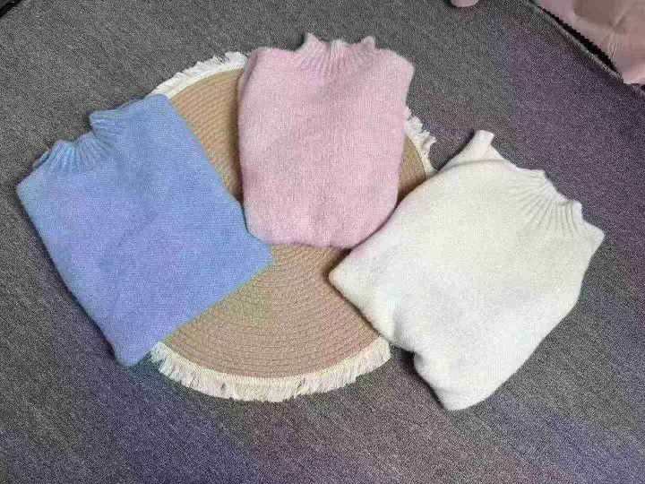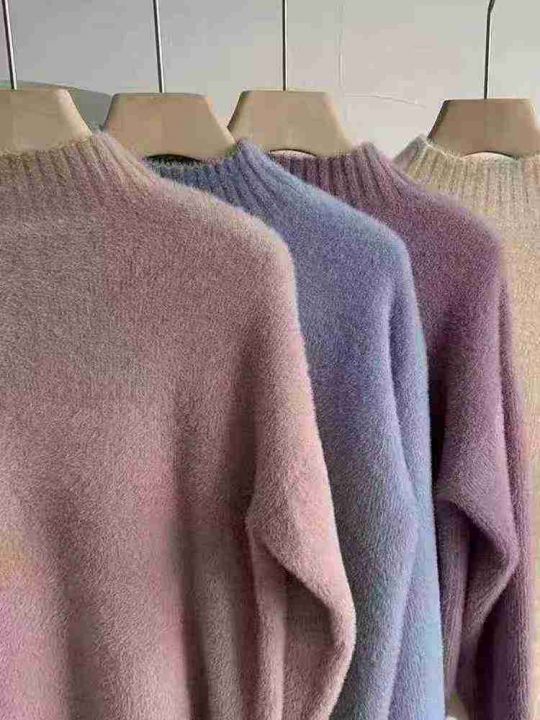 半高领慵懒风仿水貂毛毛衣女早秋新款加厚打底宽松针织...