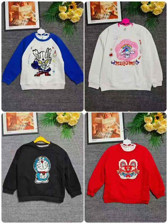 天猫仓回收465件华棉潮牌加婴儿绒秋冬童装卫衣,码数100-150。质量超好,手感软糯舒适,有后领包边到肩,很多都是亮片可以拨动变色的工艺款。带纸板高级拉链袋包装。分货➕1。 货号:1303