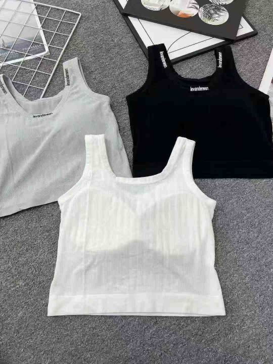 ☕️带胸垫字母设计感美背无钢圈外穿宽肩背心女上衣内...