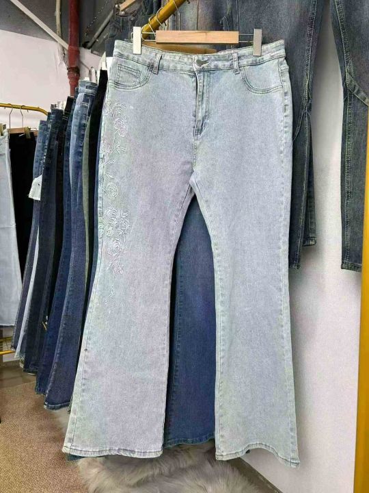 外贸款。高品质微喇叭弹力阔腿牛仔裤数量大约400条图...