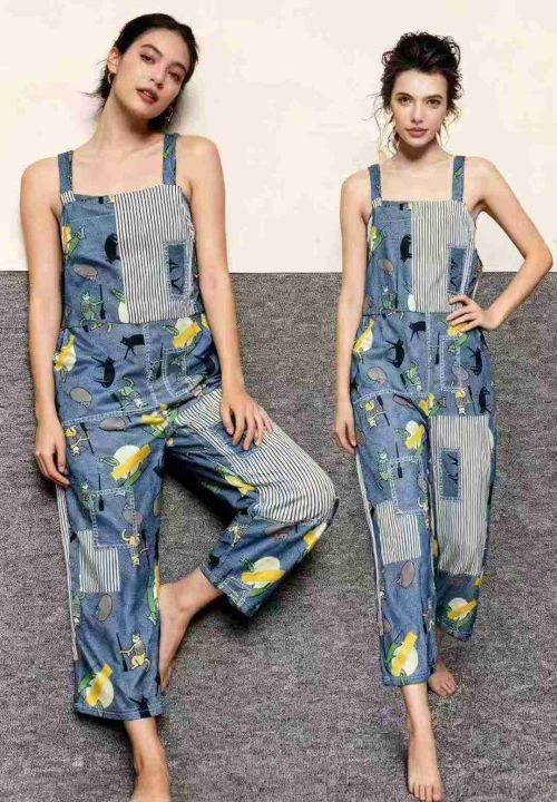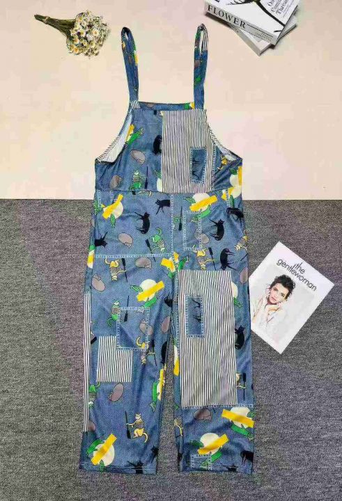 外贸时尚百搭减龄个性卡通印花背带裤,单款单色,有独...