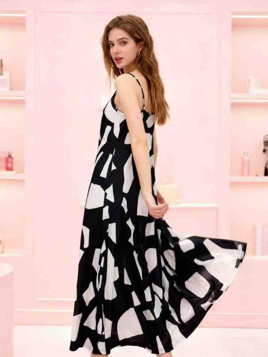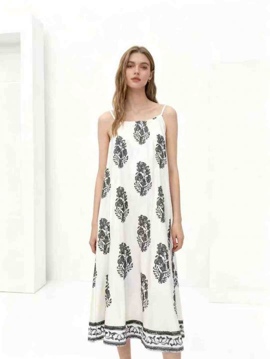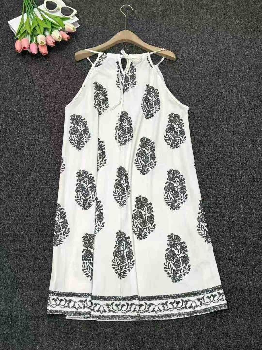 设计感宽松复古印花无袖吊带连衣裙夏季新款海边度假风...