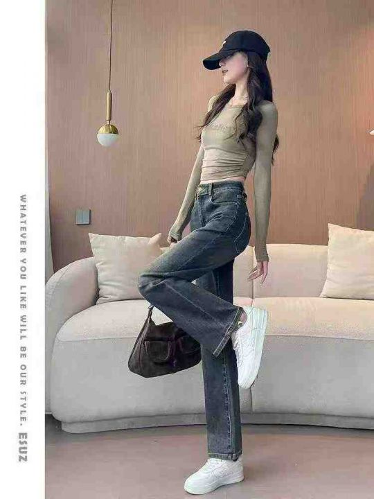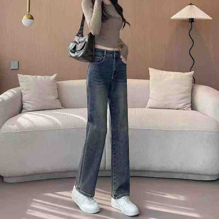 天猫下架气质高腰直筒牛仔裤女2025年新款春秋宽松显瘦...