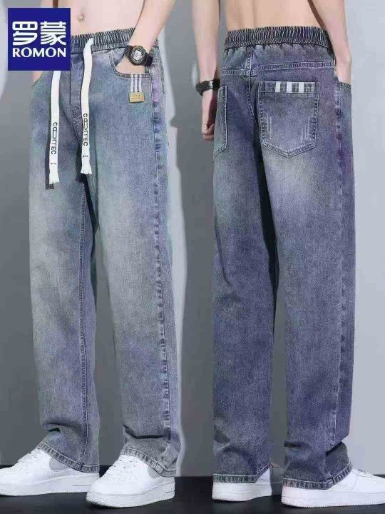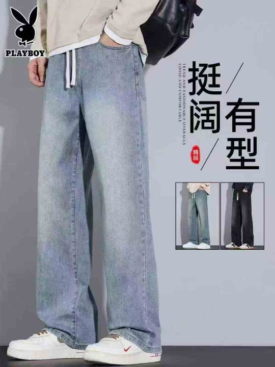 ☕️潮牌男装松紧腰牛仔阔腿裤