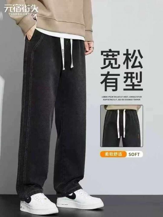 ☕️潮牌男装松紧腰牛仔阔腿裤