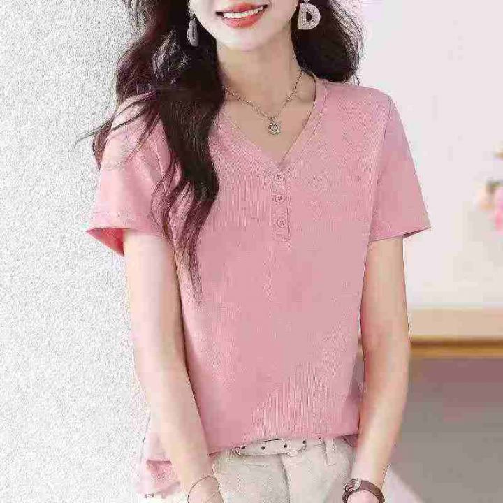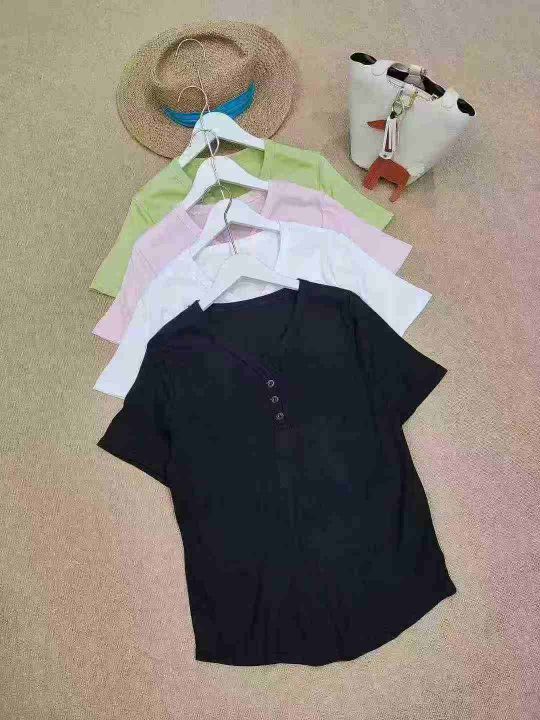[月亮]:5.8清1500件[月亮]:夏季新款纽扣V领休闲短袖...