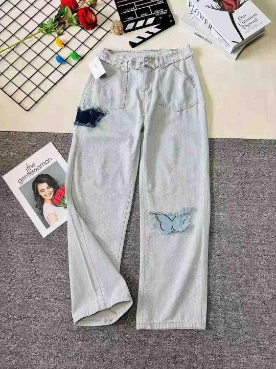 天猫精选1800条 时尚洋气国潮蓝色蝴蝶刺绣毛边阔腿牛仔裤女,单款单色S~XL码,码数比例很平均,品质很好,独立包装带吊牌,全清10.8元分货加一[烟花][烟花][烟花]