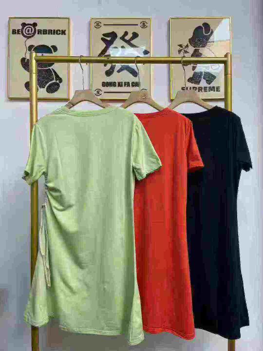 天猫在售款300件左右高品质夏季纯棉中长款圆领抽绳收腰连衣裙,单款三色,有弹力,码数M-3XL,独立包装
