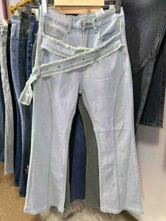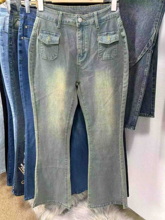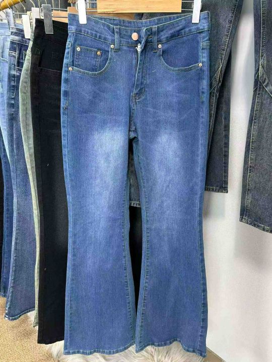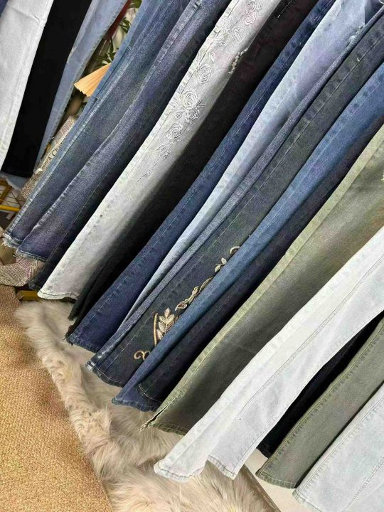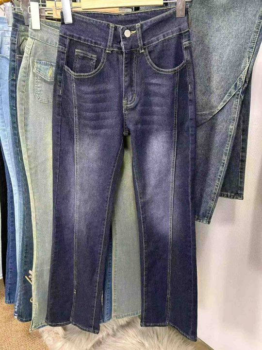 外贸款。高品质微喇叭弹力阔腿牛仔裤数量大约400条图...