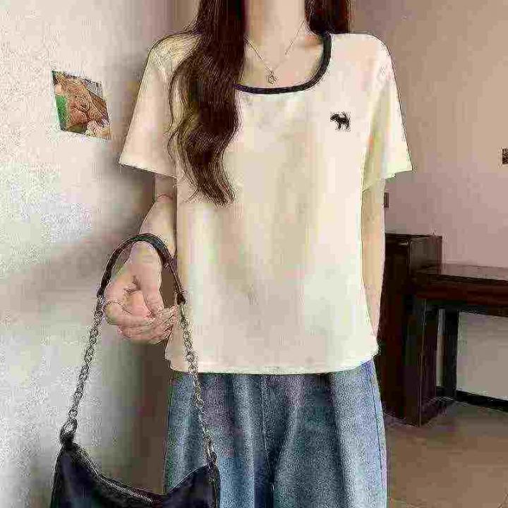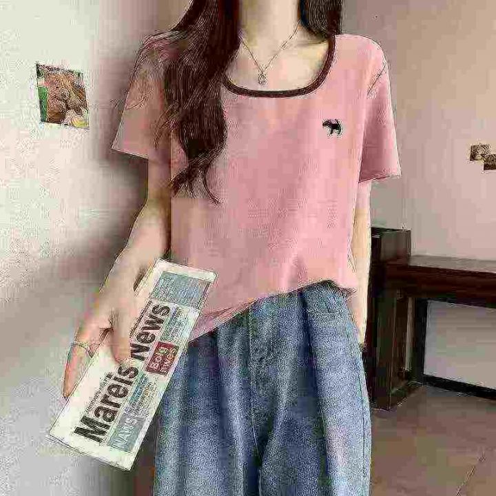 天猫在售款4000件高品质螺纹冰丝夏季宽松法式方领T恤,面料柔软高弹力,单款四色,S-3XL,独立包装
