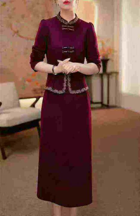 [月亮]:春秋款中式国风气质晚宴礼服连衣裙