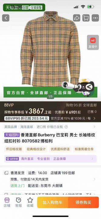 Burberry巴宝莉长袖衬衫1000件左右。 货号:297...