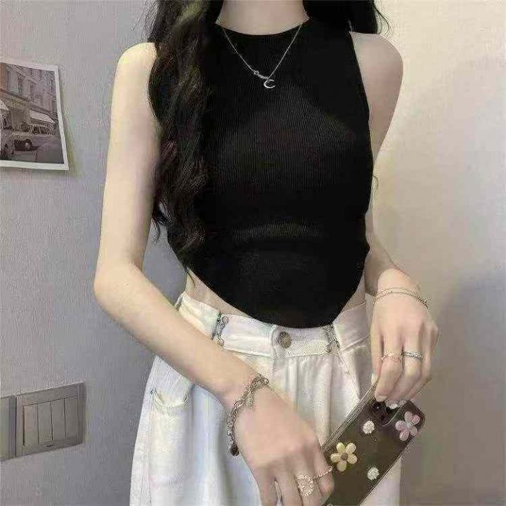 夏季新款不规则圆领弹力修身韩版百搭辣妹针织无袖背心,独立包装,均码面料...