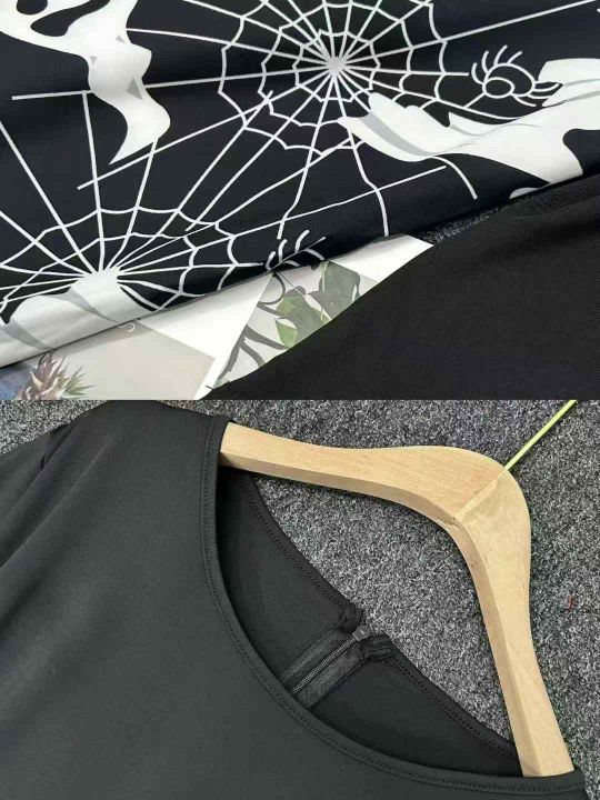 跨境电商赫本复古万圣节印花长袖大摆连衣裙送丝带,独立拉链包装,410件,XL-4XL,全清8.8