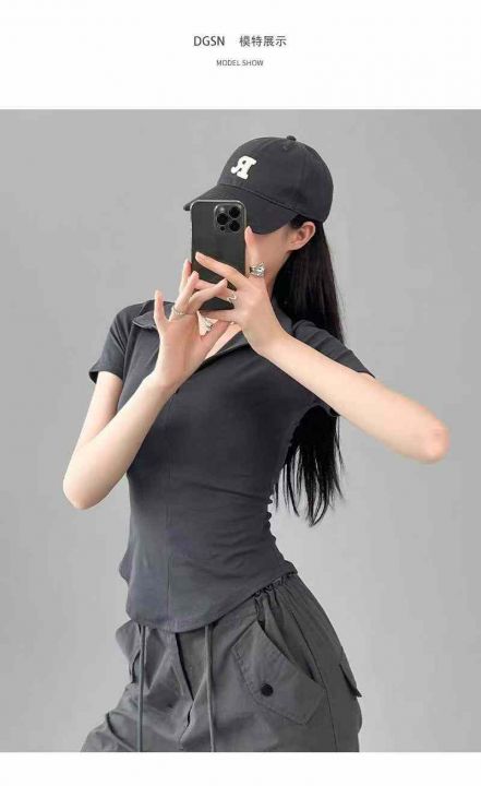 [發]纯欲拉链翻领辣妹短袖体恤170件