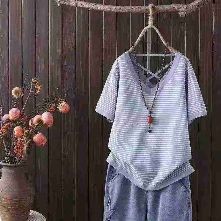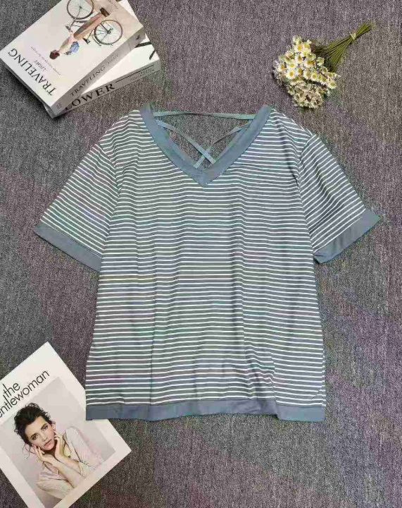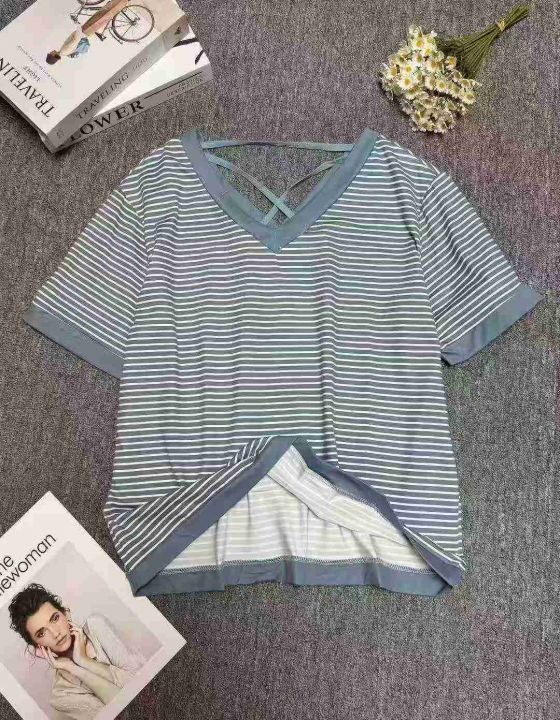 新款女装条纹宽松显瘦遮肚子上衣短袖T,大版型,有独立包装,数量100件左右,L-2xl,全清3.9