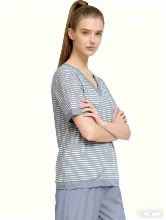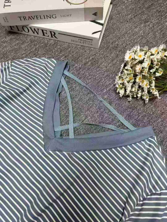 新款女装条纹宽松显瘦遮肚子上衣短袖T,大版型,有独...