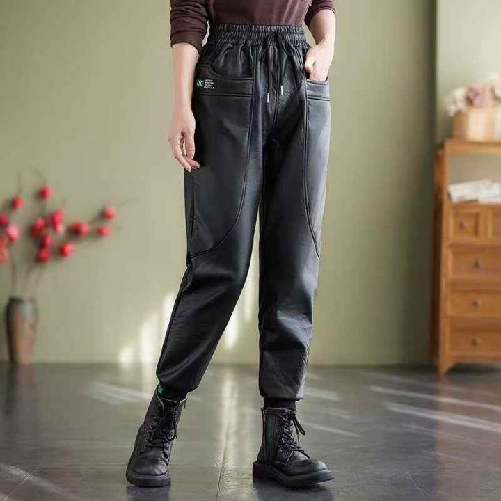 冬季新款大码女装加绒加厚女装皮裤,独立包装带吊牌,...