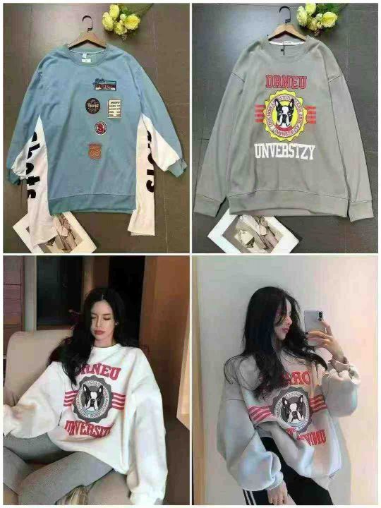 上身圆领卫衣[太阳]全清13.、300件、均码男女纯棉宽松休闲时尚字母图案印花长袖卫衣,大部分后领包边到肩,部分有吊牌,品质,这个性价比直接拉满✅全部全新独立包装、100/200件起多款混配13.3