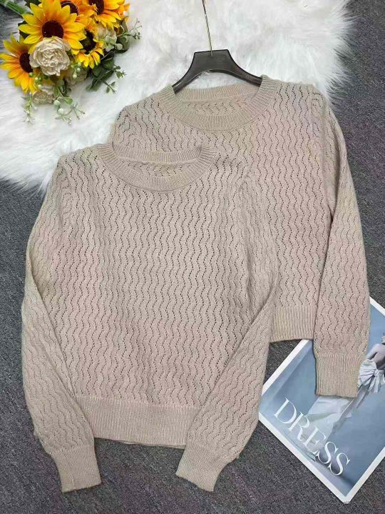 秋季新品时尚洋气镂空织花圆领套头毛衣,独立包装,均码面料柔软舒适弹力大...