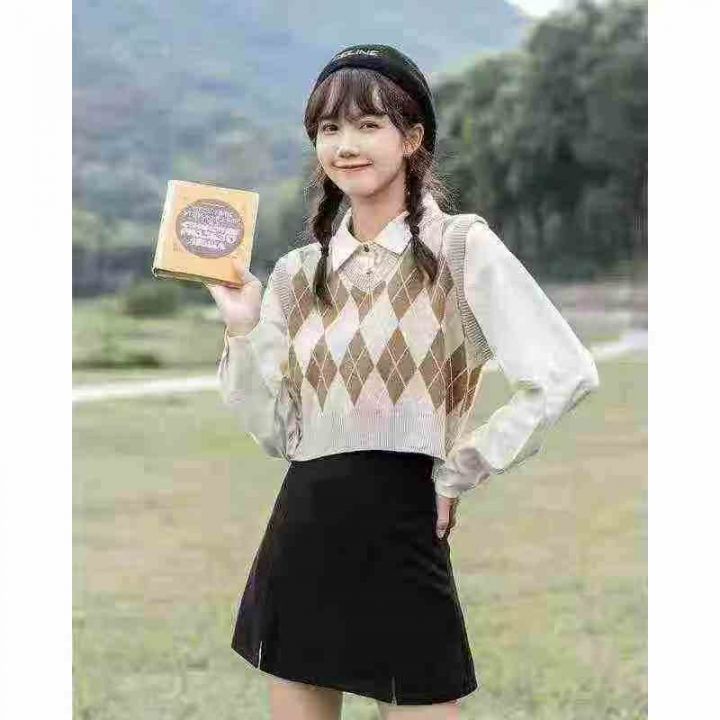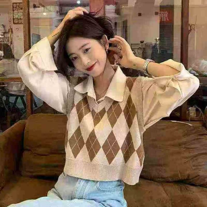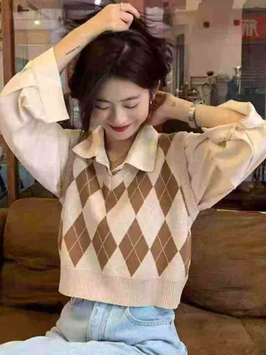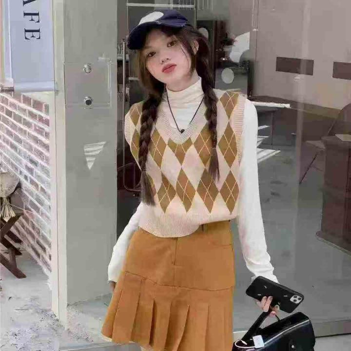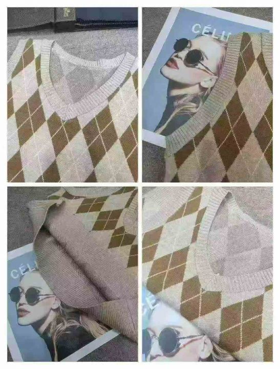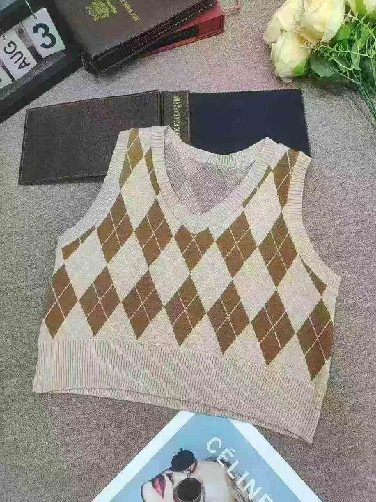 复古咖色菱形格纹马甲女2025春秋新款V领短款针织上衣宽松坎肩外穿潮,独立包装,均码,510件,清5.5,分➕1。 货号:24862