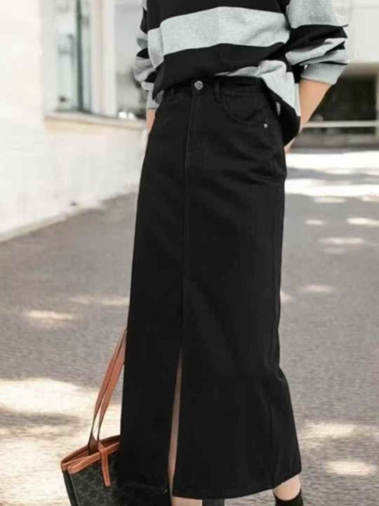 靓妹黑色牛仔半身裙女新款直筒开叉长裙子145件,独立包装带吊牌,尺码S~5XL...