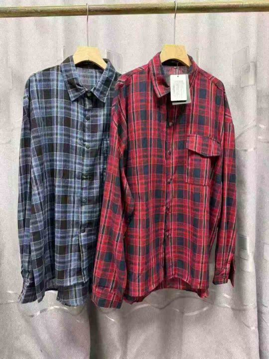 美式复古格子女衬衫宽松外套长袖上衣衬衣港风薄款格子衬衫.两个色S一2XL码60件左右.全清6.8