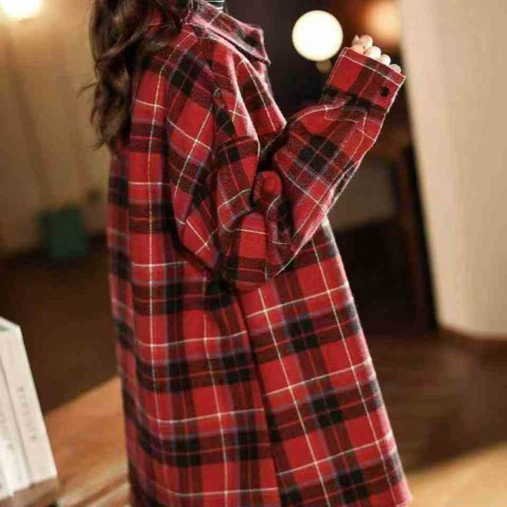 美式复古格子女衬衫宽松外套长袖上衣衬衣港风薄款格子...