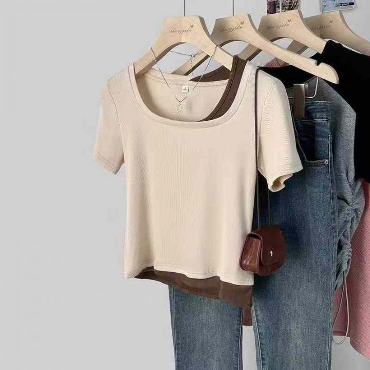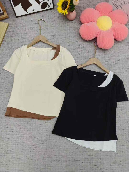 [發]女装假两件正肩辣妹短袖220件独立包装 码数S M ...