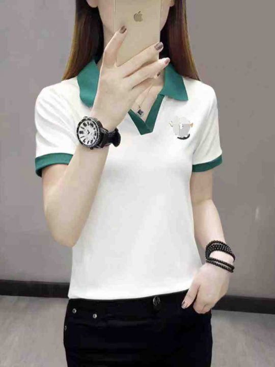 5.9元,靓妹短袖V领T恤棉质辣妹polo衫,562件,M-2XL...