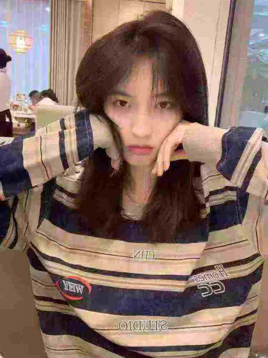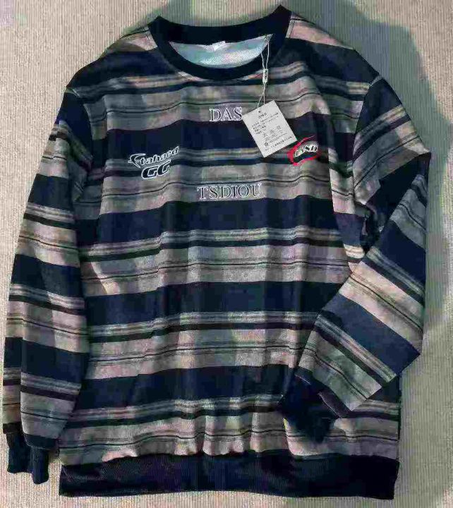 女装卫衣春秋季简约条纹圆领长袖款式套头拼色卫衣,码数S M L XL,独立包装...