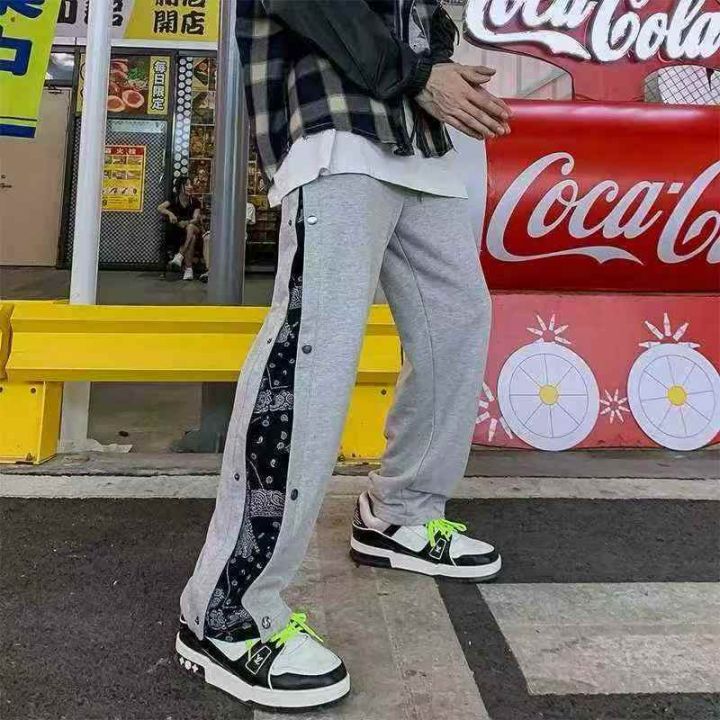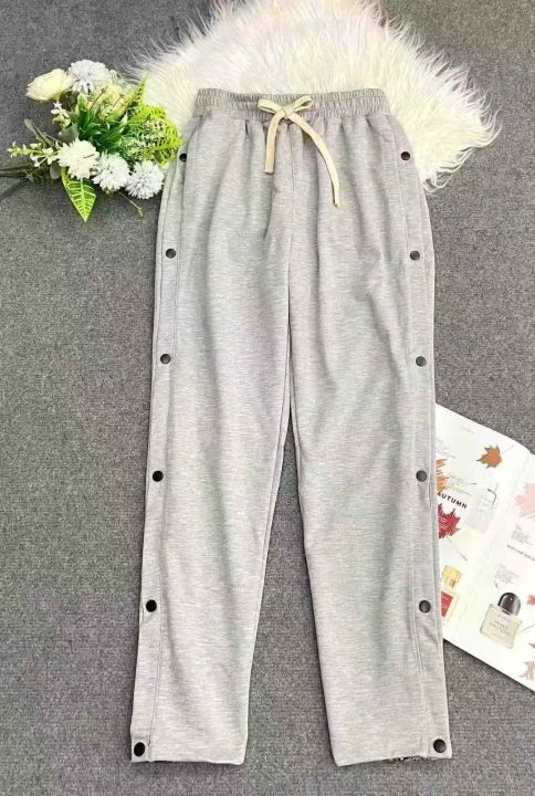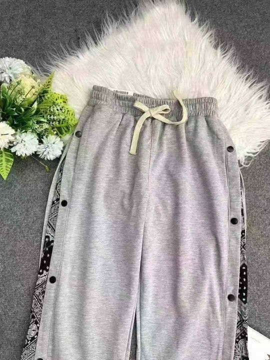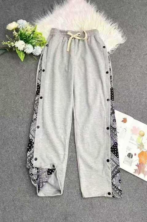 46件棉质拼接宽松休闲排扣卫裤。单款单色,面料柔软不...