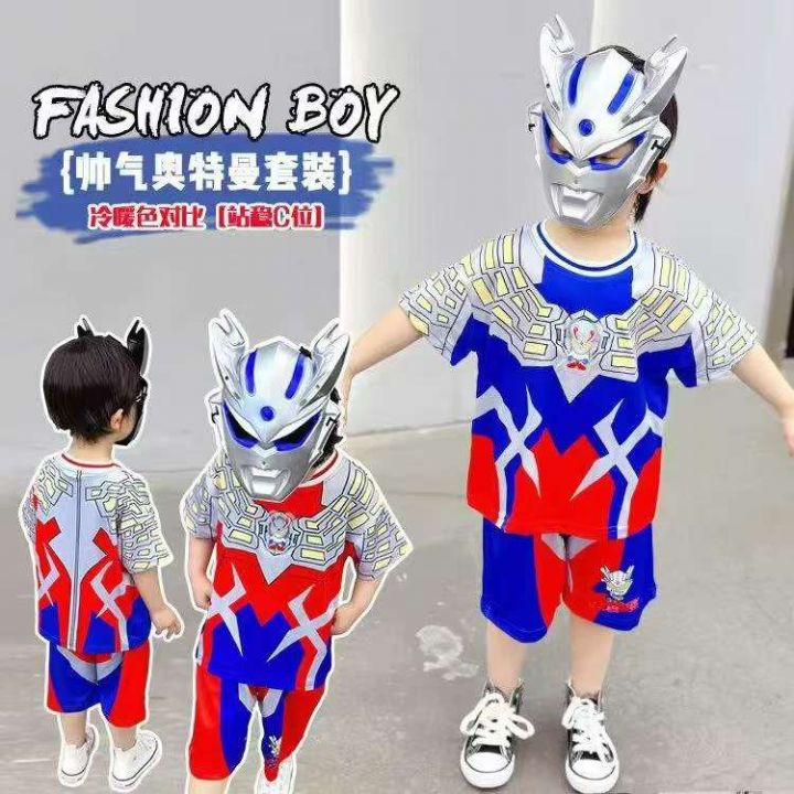 [發]童装冰丝套装7000套 奥特曼套装 独立包装有吊牌 后颈包边包条整...