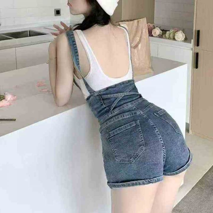 夏季新款靓妹女装弹力修身显瘦牛仔背带短裤,独立包装...